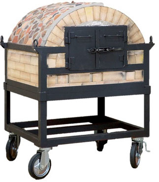 耐火性の煉瓦、コンクリート、岩石、または粘土・磁器で作られた空間で調理するオーブン